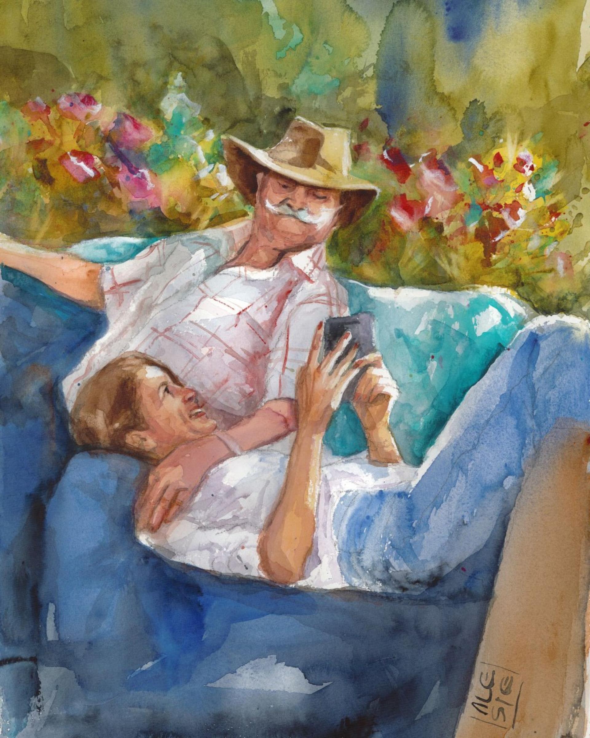 Bardziej jest to ilustracja przywołująca wspomnienia, osoby, relacje. Podobieństwo jest zachowane, ale nie fotograficzne, bardziej chodzi o atmosferę i relacje międzyludzkie pokazane w technice mieszanej na papierze bawełnianym w formacie A3. Praca oprawiona w passepartout. Czasem robię kompozycje postaci z kilku zdjęć, zmieniam na życzenie klienta tło, dodaję ważne detale. Cena zależy od stopnia skomplikowania zlecenia. Czas realizacji do 2 tygodni, do dnia wysyłki. Cena nie obejmuje kosztu wysyłki.
