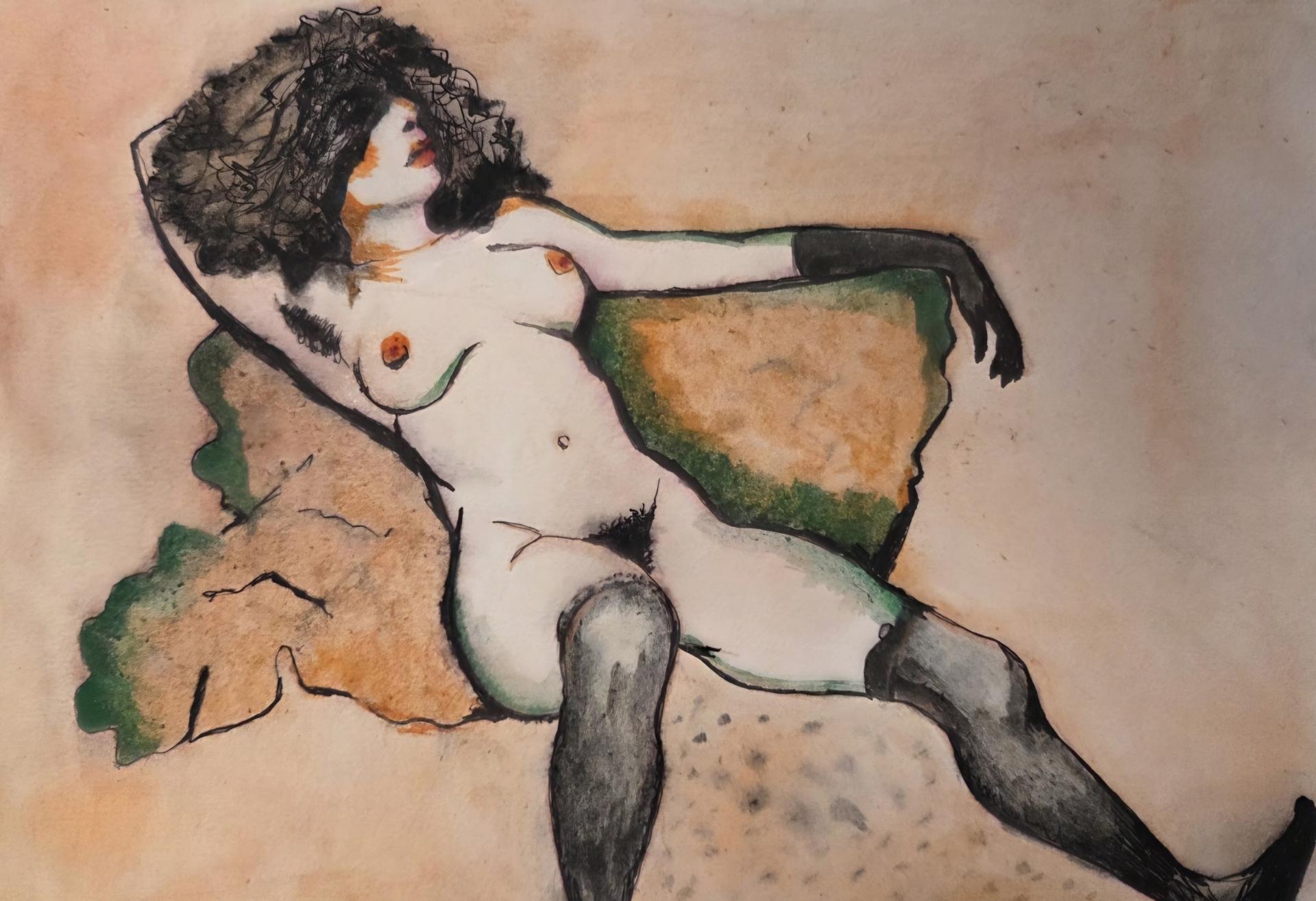 Obraz akt kobieta w stylu Burleska Unikat Technika: akwarela pióro Wymiary: A4(21x29,7) Sygnowany