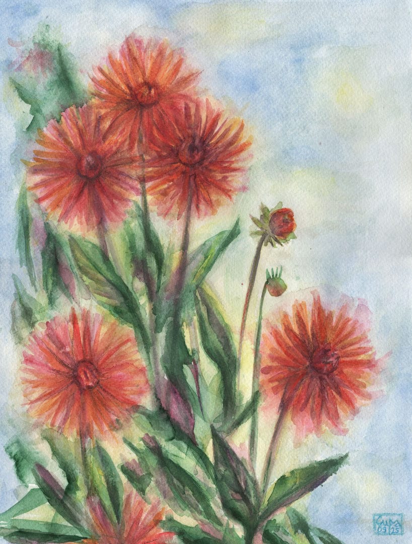 Astry - Akwarela wykonana na papierze Fabriano (300g/m2, 25% bawełny, Acid Free) o wymiarach 30cmx40cm. Sprzedawana razem z passe partout
