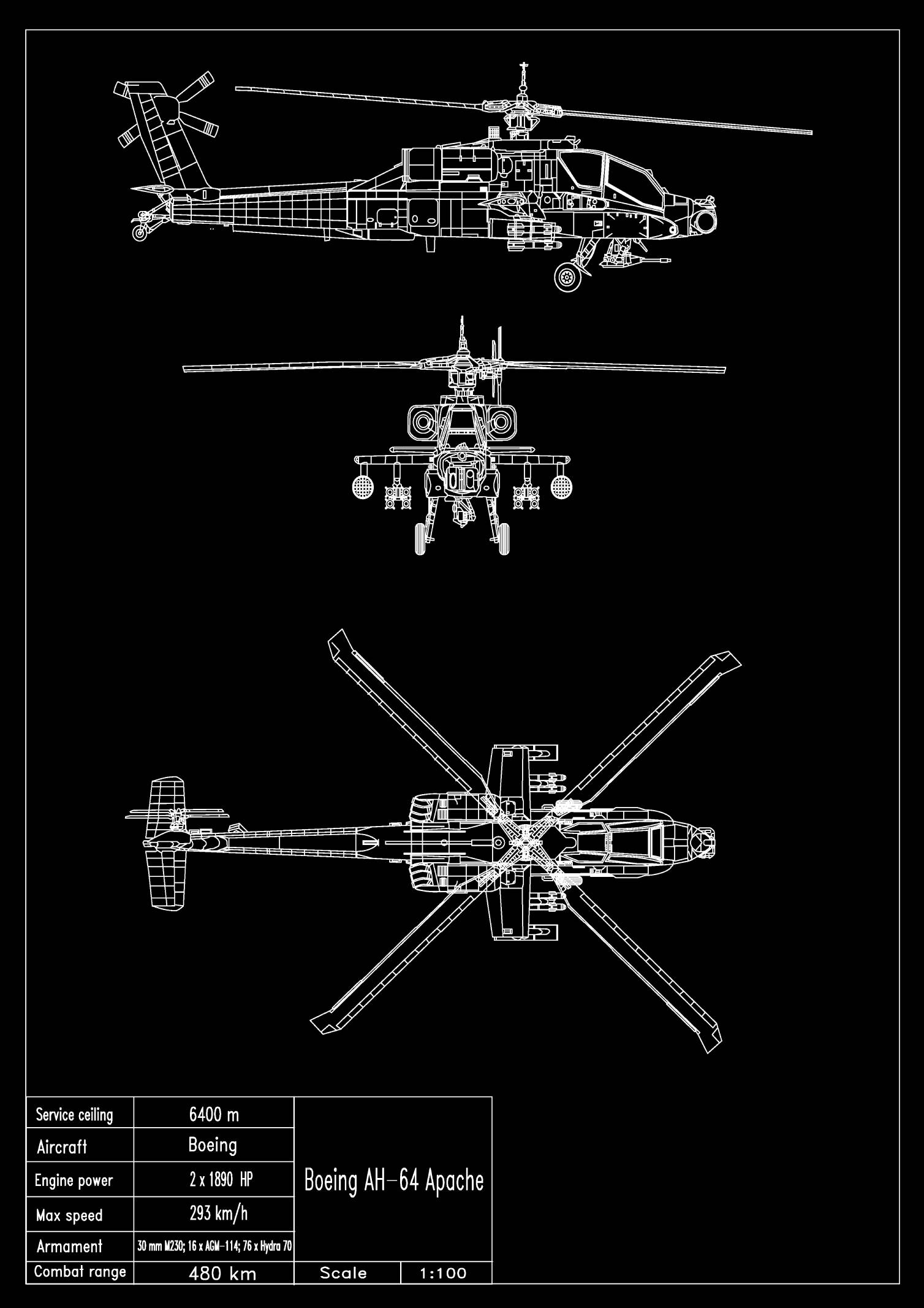 #apache #ah64 #blueprint #militaryart #aviationart #helicopter #monolineart #rysunektechnicznyCena