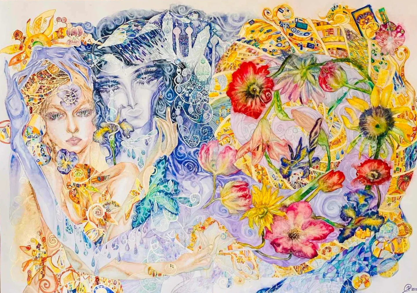 Nizależnie od pogody, czy na dworze jest zimno, czy ciepło, ten obraz idealnie odda nastrój panujący za oknem. Chłodne spojrzenie kobiety w centrum doda zwykłemu, zimowemu wieczorowi szczyptę magii i tajemnicy, a wzrok dziewczyny, którą obejmuje ramionami będzie lśnił wraz z letnim słońcem. Z kolei muszlą, która jest ich połączeniem, hipnotyzować będzie każdego, kto odważy zajrzeć w głąb tego obrazu.