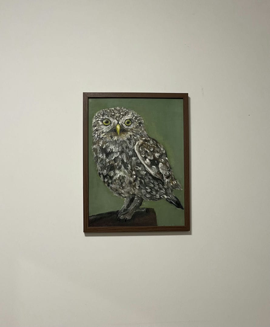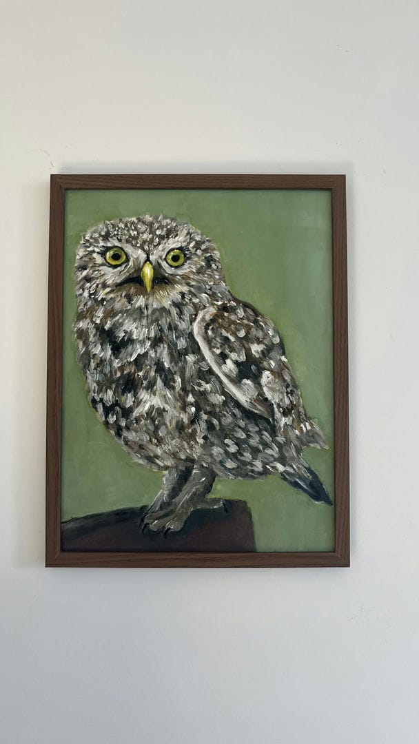Tablica malarska.Olej.Rama.30x40cm To nie jest zwykła sowa — to strażniczka ciszy i obserwatorka nocnych tajemnic. Sowa symbolizuje mądrość, intuicję i zdolność widzenia tego, co ukryte. Siedzi spokojnie, patrząc mądrze w ciszy. W jej oczach odbija się noc i wszystkie sekrety, jakie niesie. Delikatne szarości, beże i brązy tworzą aurę skupienia. Każde pióro wydaje się osobnym światem. Obraz jest jak zatrzymany moment między snem a czuwaniem. Podaruj sobie lub bliskim taki talizman: ozdobi wnętrze, stanie się punktem centralnym uwagi gości, a może nawet podpowie właściwą drogę w trudnym momencie. Cena 300 zł.