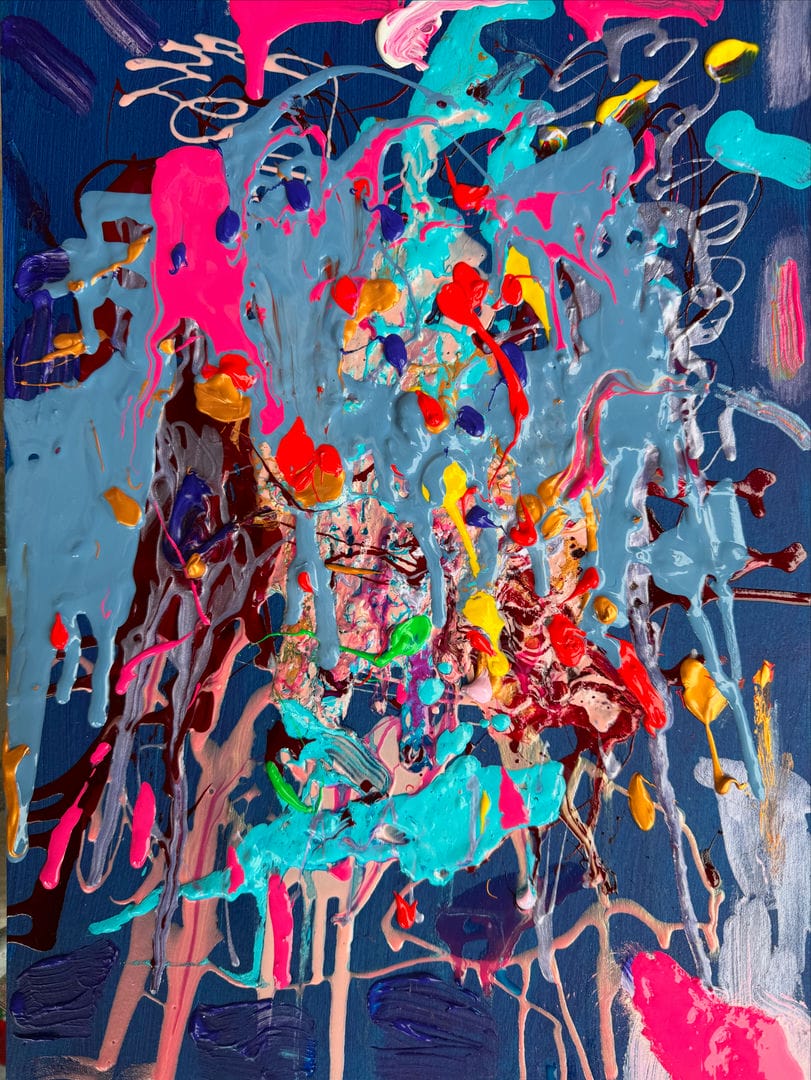 Obraz Wiosna namalowany przeze mnie farbami akrylowymi na grubym kartonie a3.