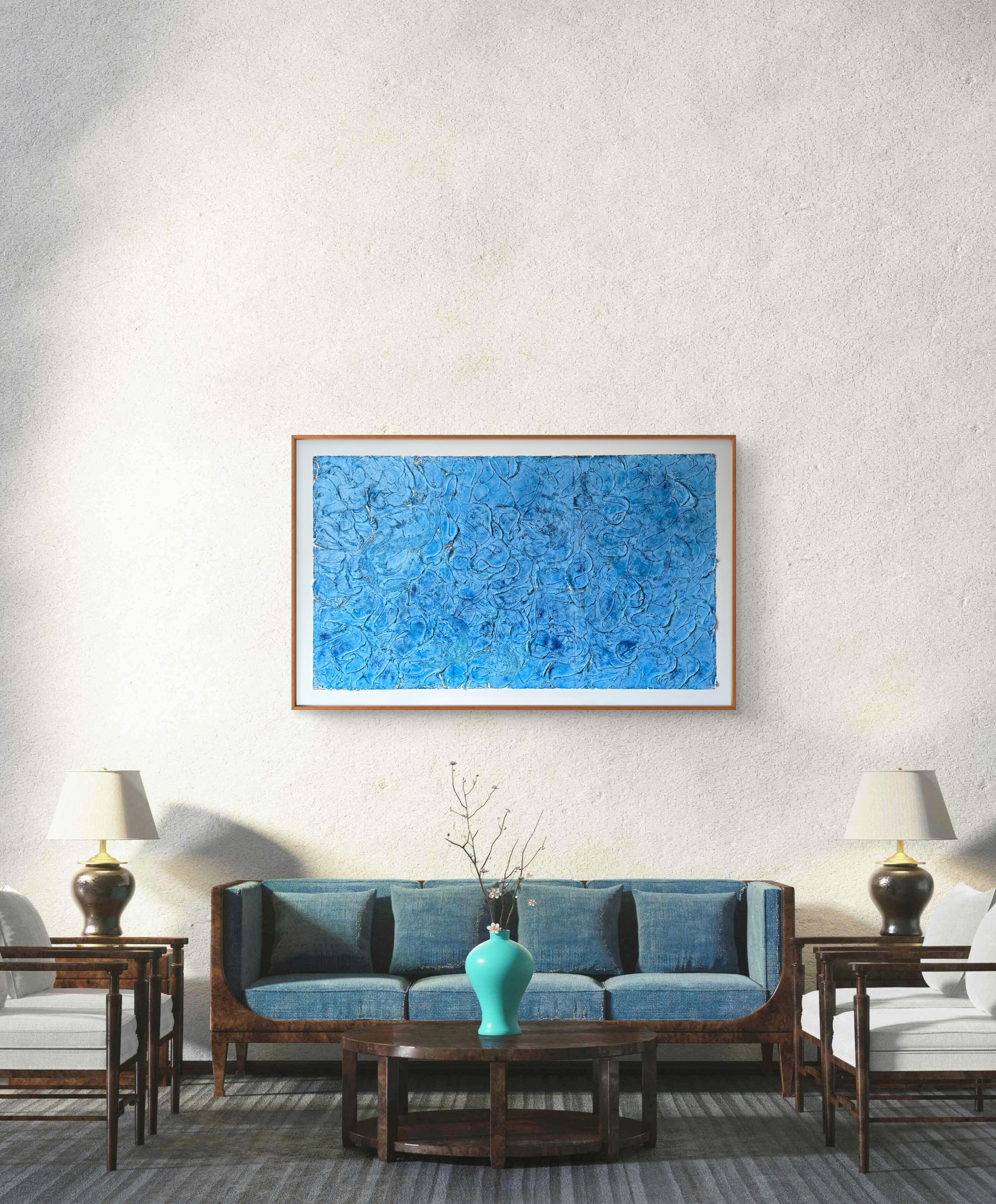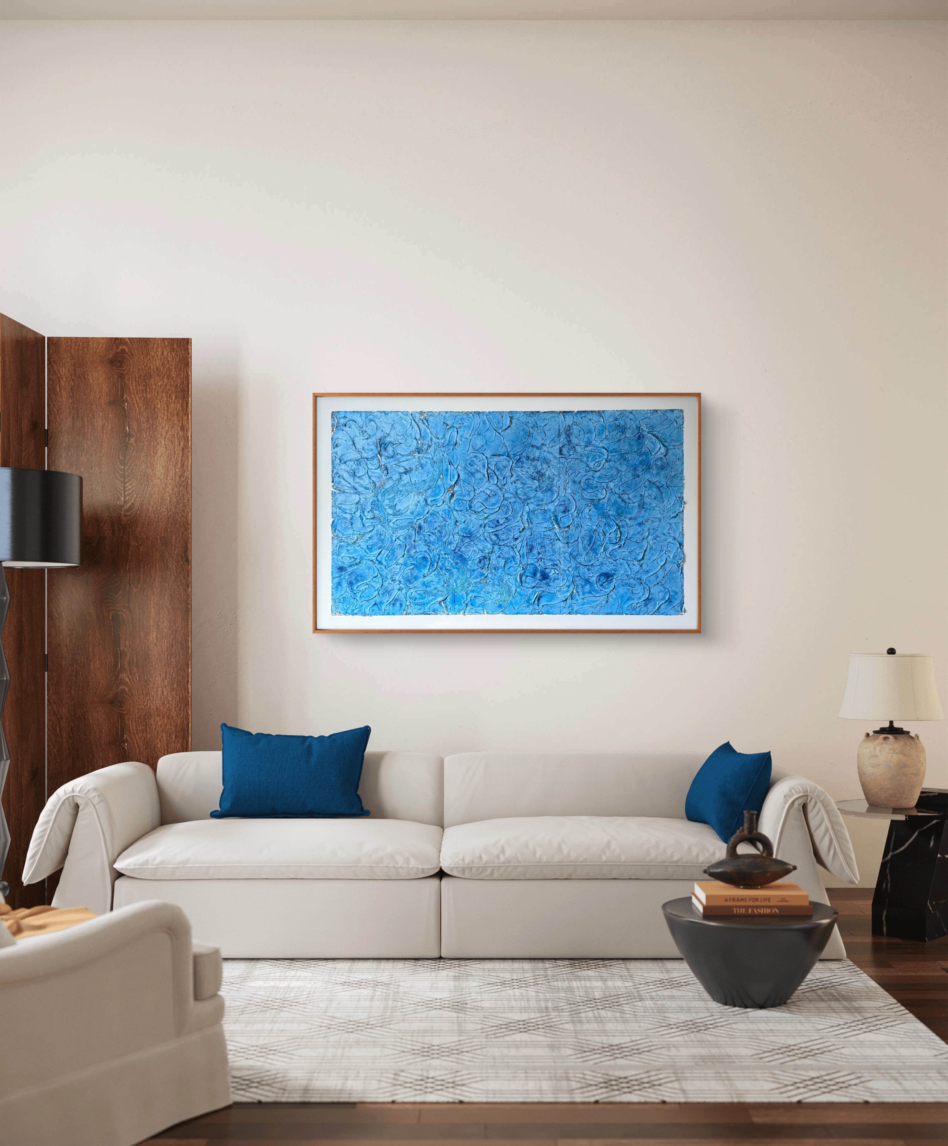 Struktura i akryl na płótnie. Obraz oprawiony i zabezpieczony werniksem.